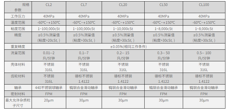 ? ? ?? 針對各種應用,借助不同的間隙、不同的軸承類型及不同材料,CL 系列齒輪式流量計可實現(xiàn)不同介質(zhì)的測量。